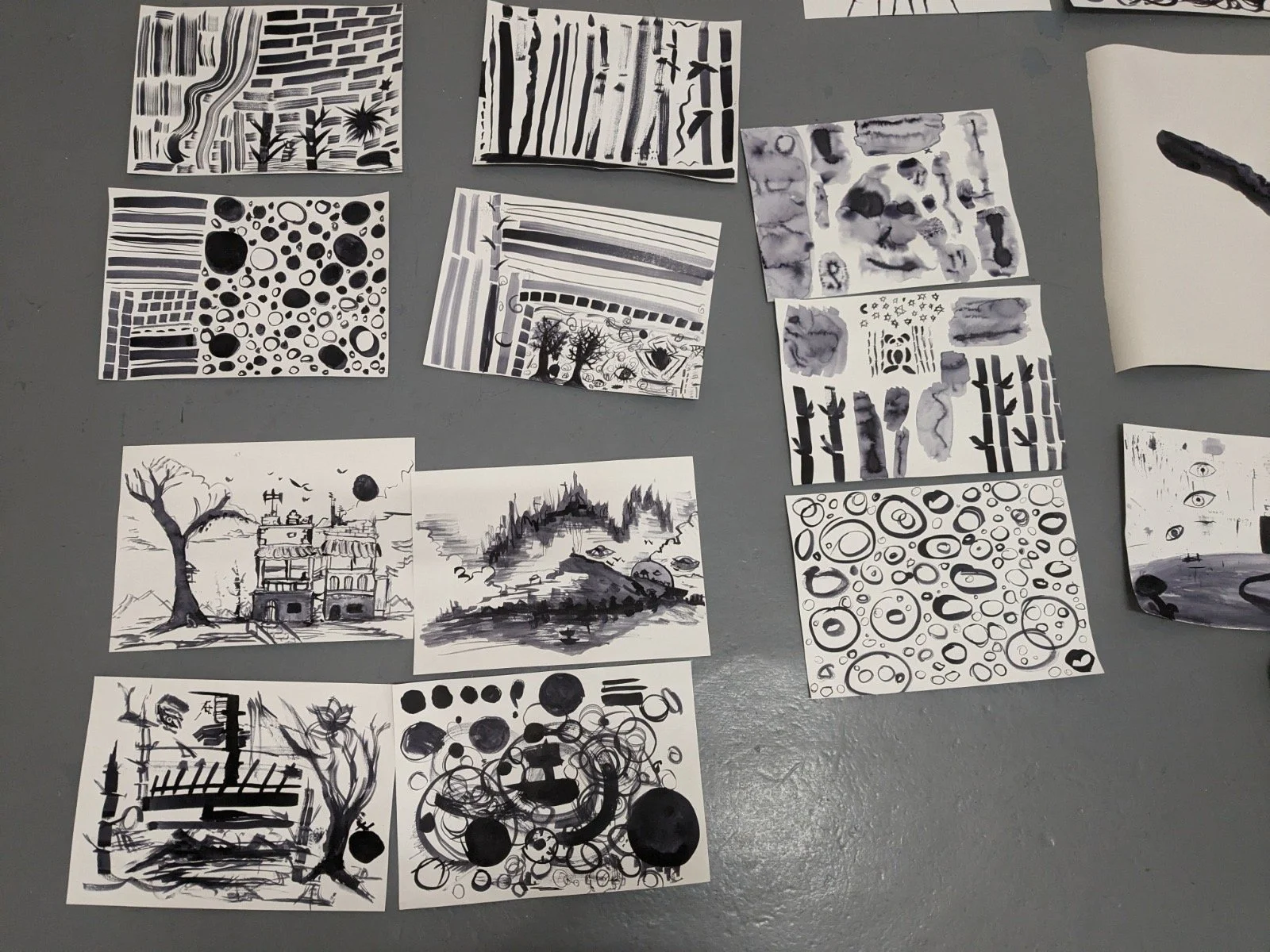 The group created lots of experimental work exploring abstract patterns, fluid lines, bold brushstrokes, delicate lines, and circular forms to representations of landscapes, architecture, and figures. Each piece reflected the students' personal engagement with the materials, exercises and the exhibition.