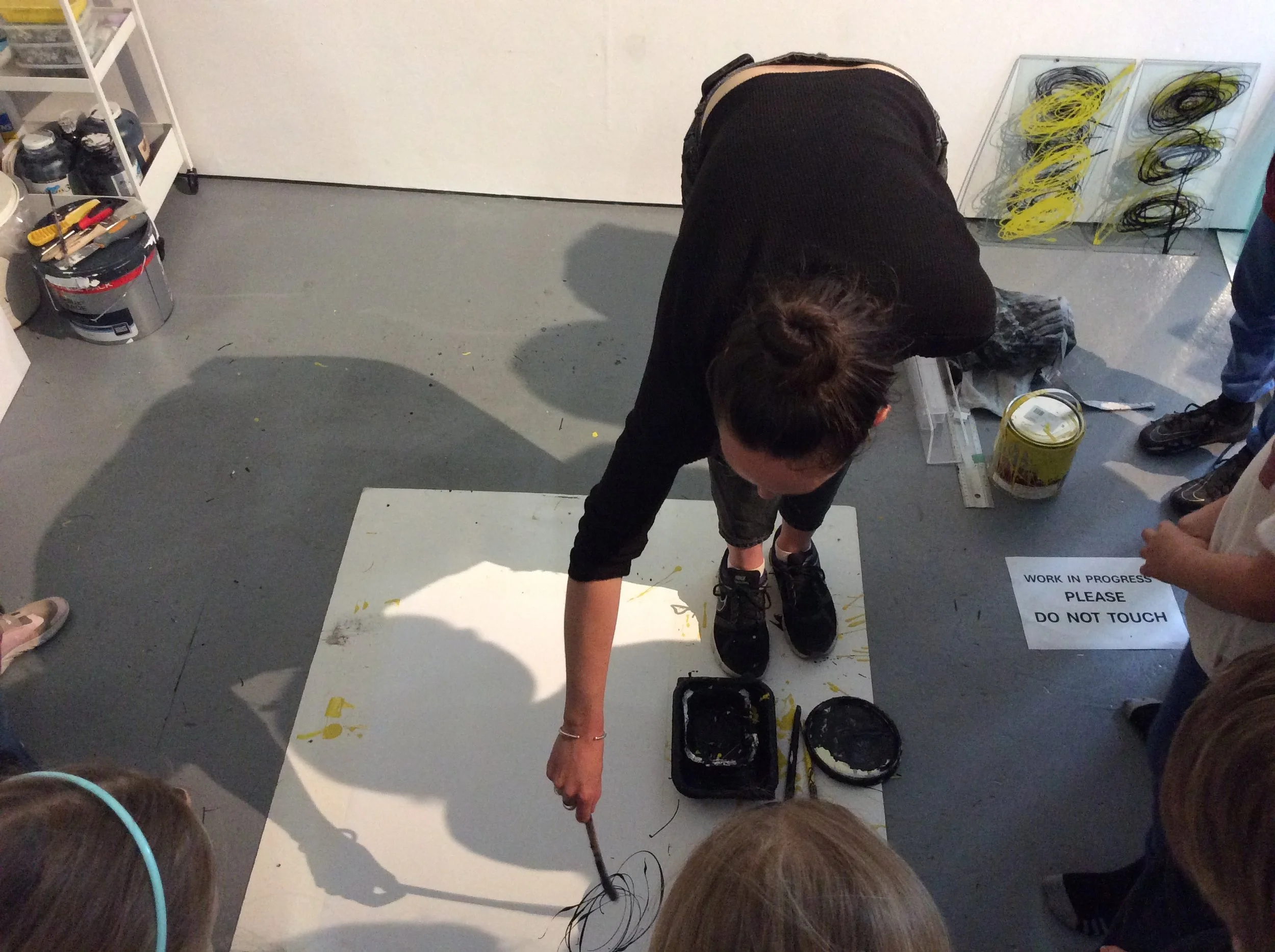 The workshops stemmed from Laura's desire to share her artistic techniques and offer everyone the chance to engage with paint in a playful, expressive manner, similar to her own practice. Inspired by the exhibition, residency, and her organic painting methods, the free workshops focused on mark-making and abstraction as tools for non-verbal self-expression.