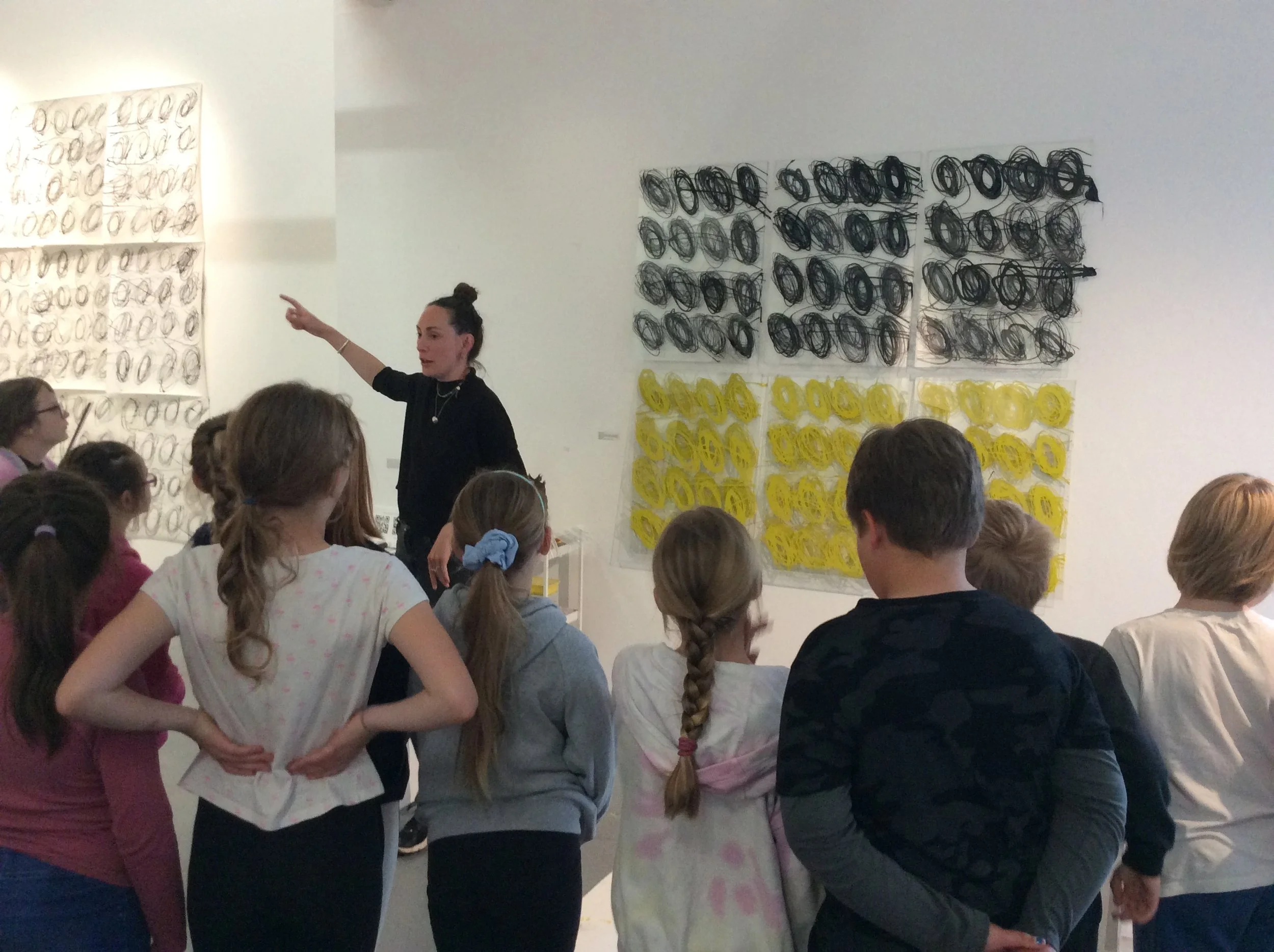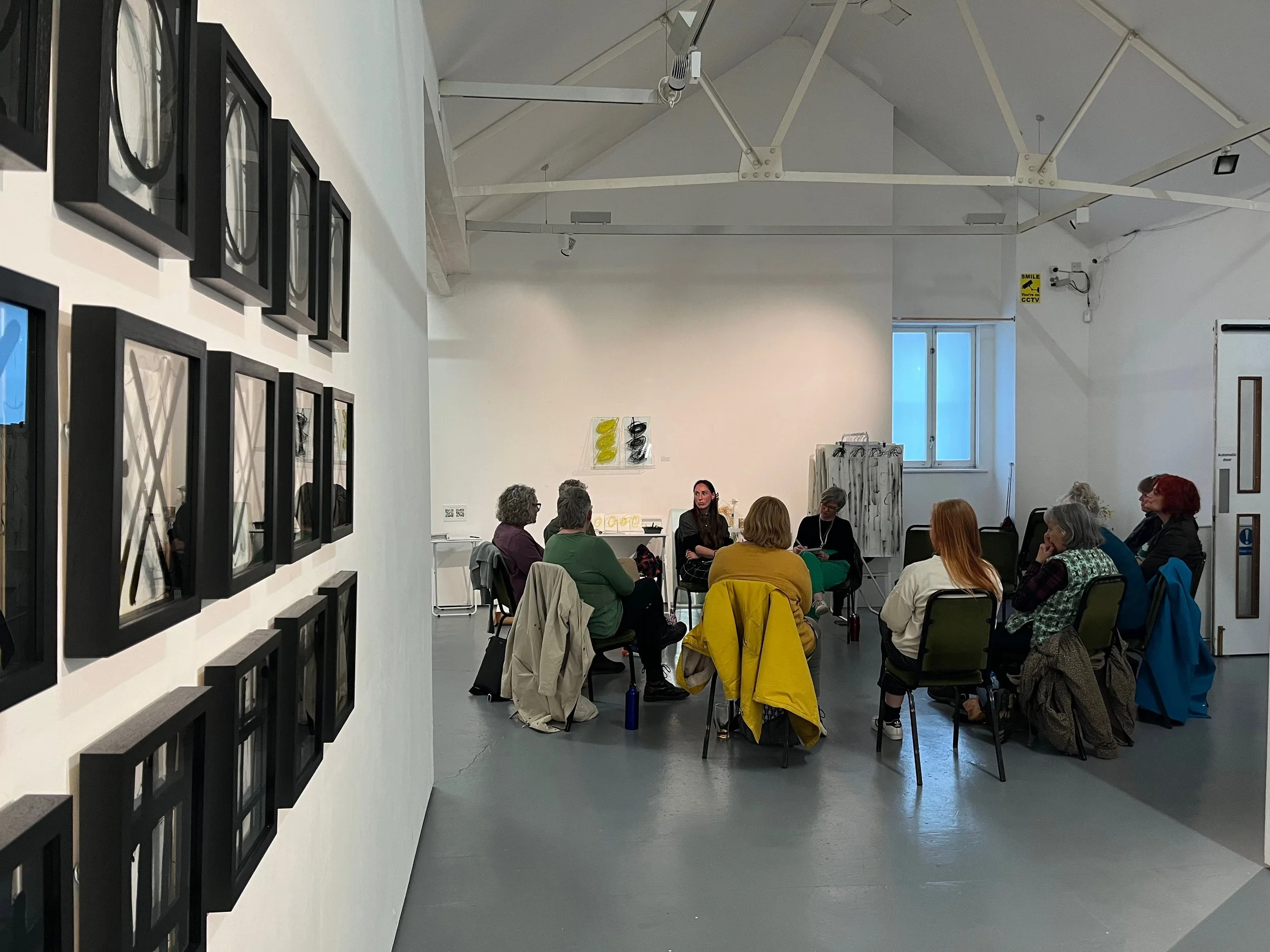 Caroline Underwood lead a visit with the Quay Arts Youth Art Session with young people aged 12 - 15. The session began with a tour of the exhibition, where the group engaged with the artwork through thoughtful discussion. One student, in particular, was drawn to an asymmetrical piece, describing it as reminiscent of a waterfall.