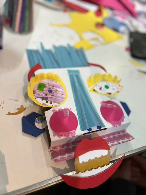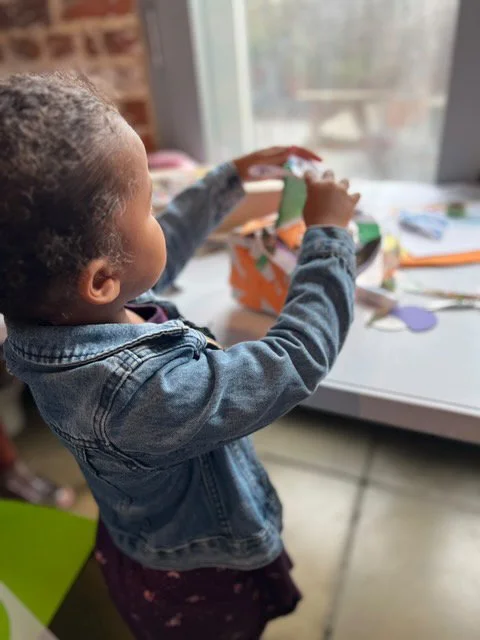 The workshops drew a diverse group, from children as young as three years old to grandparents, all of whom joined in the creative process. For many families, it was a collaborative experience where children, parents, and grandparents worked side by side or even co-created their pieces, sharing ideas, materials, and approaches. The atmosphere was lively, with each family bringing a unique perspective, transforming the space into a colorful hive of artistic exploration. Several families who had previously attended the 'Make Your Mark' sessions returned for these workshops, bringing with them the painted paper they had originally created, which they repurposed into new collages and sculptures.