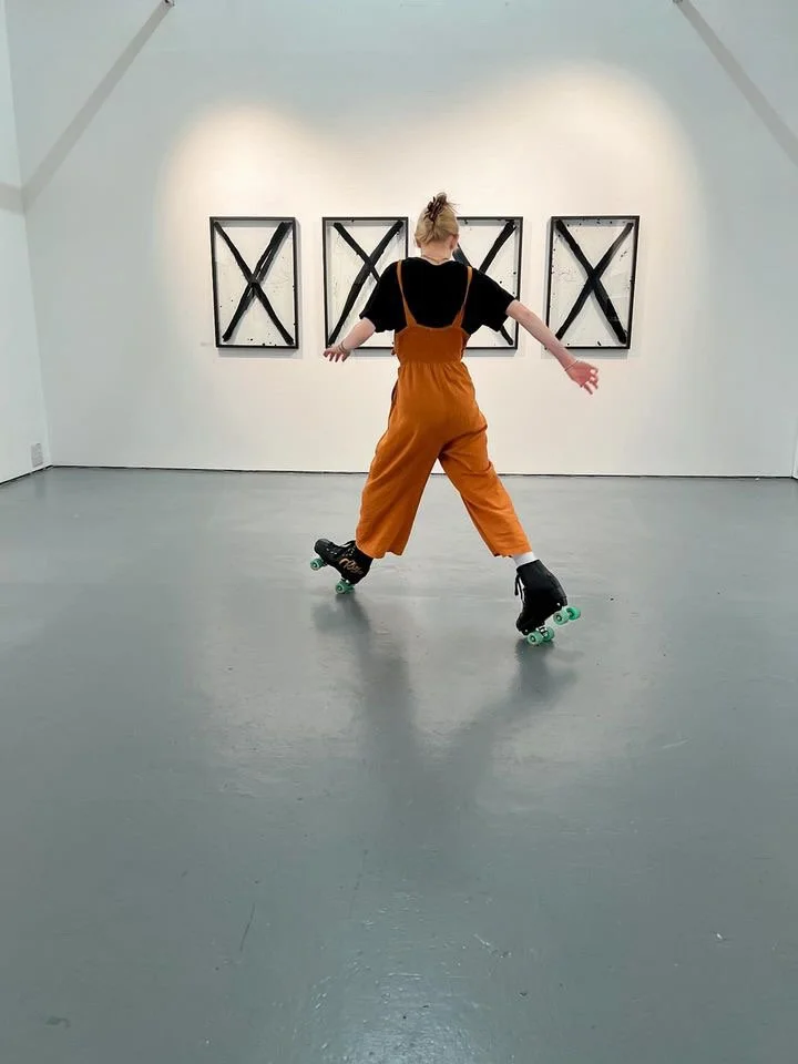 After viewing the exhibition, 16-year-old Betty George, in a quiet and reflective moment, asked if she could roller-skate in the space as a way to engage with and respond to the artworks. Her request was an unexpected yet intuitive reaction, blending movement with art appreciation.