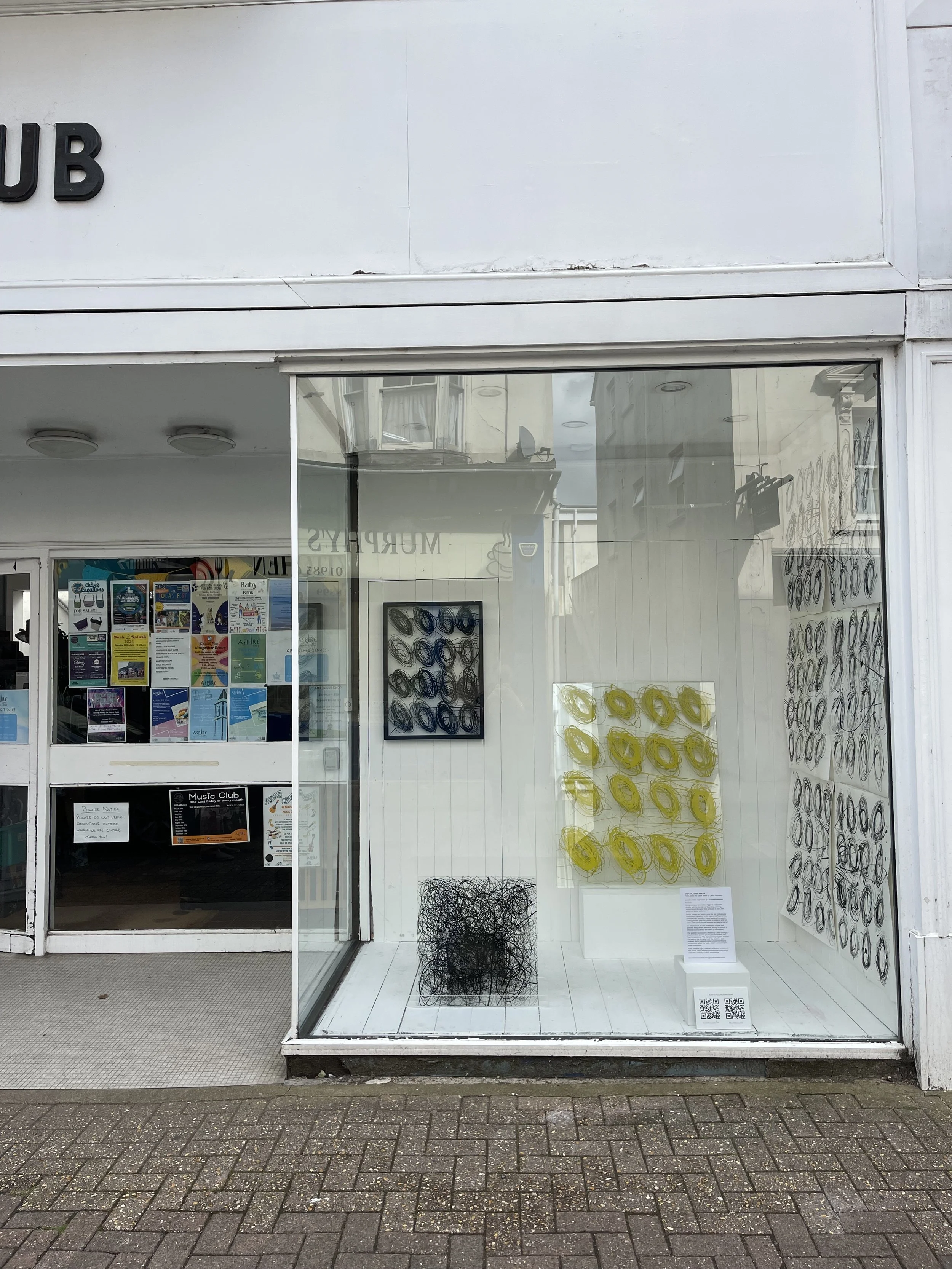 Laura was invited to showcase her work at the Arch Window Gallery by local artists and curators Jan Frith and Violet Mareck. This cross-promotional exhibition ran concurrently with "Drip Splatter Smear" for four weeks, featuring new pieces that Laura created during her residency in the gallery space.